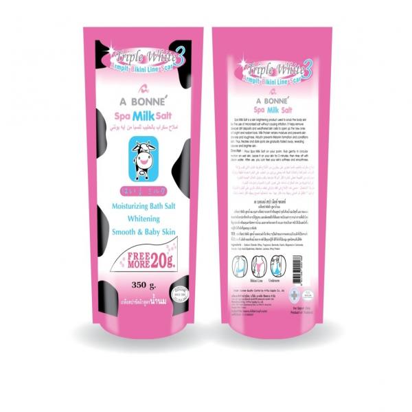 Spa milk salt is a skin brightening product with milk formula and natural spa salt benefit. It is used to scrub the skin to remove grime, sweat, pollutants from your body without causing irritation, most importantly to remove the dead skin cell to open up the new one of new, smooth, bright and radiant look. At the same time, It nourishing your skin with Pure Milk, Arbutin and allantoin.