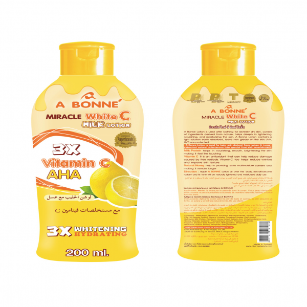 A Bonne Lotion is used after bathing for severely dry skin consists of ingredients derived from natural helps deeply in lightening nourishing and moisturizing the skin. A Boone Lotion contains light solution easily absorbed leave non greasy on the skin. UVA UV Bare protected.