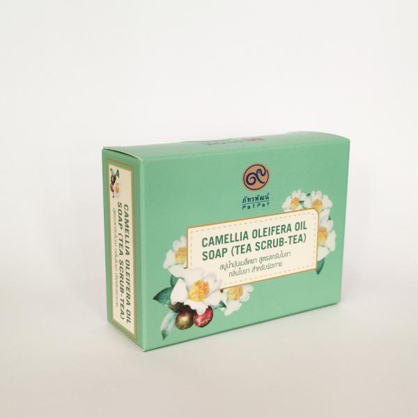 สบู่น้ำมันเมล็ดชา สำหรับผิวกาย สูตรสครับใบชา กลิ่นใบชา