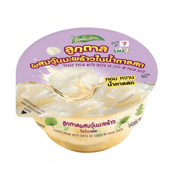 วุ้นมะพร้าวผสมวุ้นในน้ำเก๊กฮวย มีกลิ่นหอมเก๊กฮวย สีเหลืองใส
