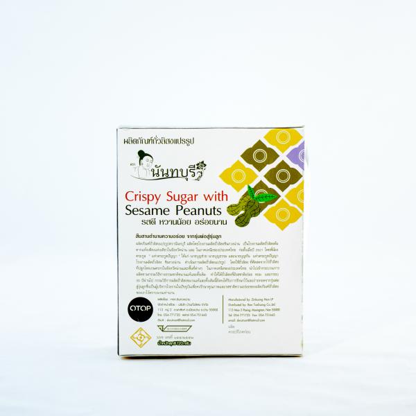 ถั่วลิสงกะเทาะเปลือกเคลือบน้ำตาล คลุกงาขาว รสชาติหวานกำลังพอดี อร่อยถูกใจทั้งผู้ใหญ่และเด็ก