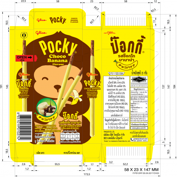 Pocky Choco Banana Flavour (Chocolate Biscuit Stick Coated with Banana Flavour Confectionery)