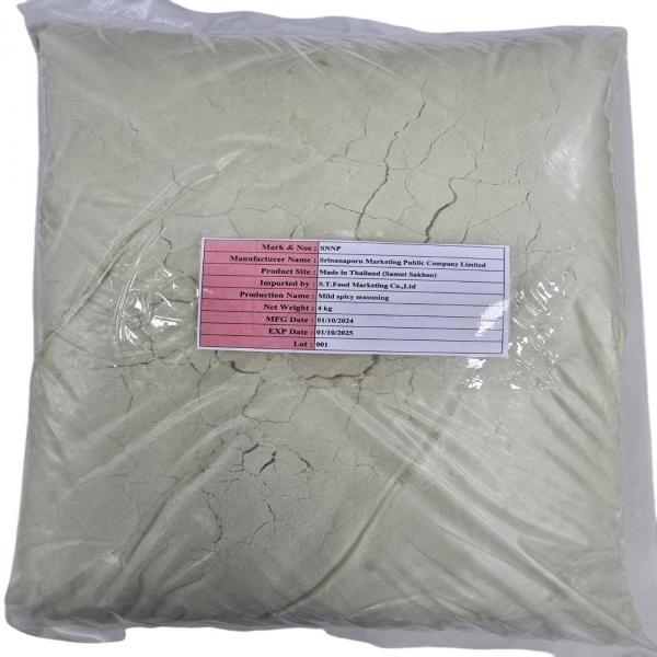 Slightly brown - orange colour, crispy texture.Hot and spicy,tomyum flavour