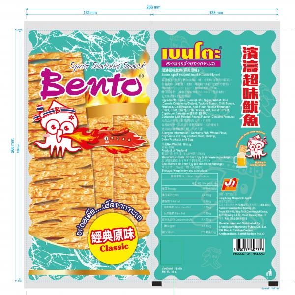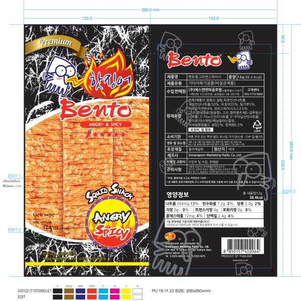 Slightly brown colour, soft and elastic to semicrispy texture,characteristic of grilled squid, hot, sweet and slightlysour taste, hot and spicy aroma / Short sheet with a cross pattern