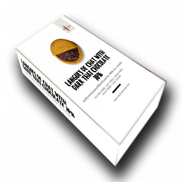 skinny and crispy cookies from gluten free flours and unrefined sugar. it's filling with real Thai chocolate 70%