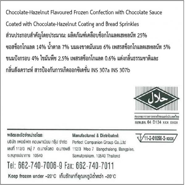 • Chocolate-Hazelnut Flavoured Frozen Confection with Chocolate Sauce Coated with Chocolate-Hazelnut Coating and Bread Sprinkles