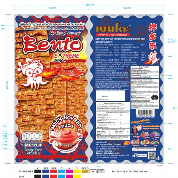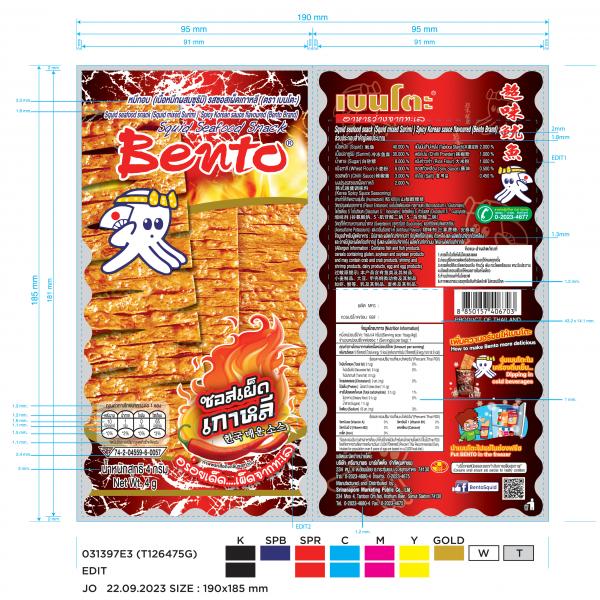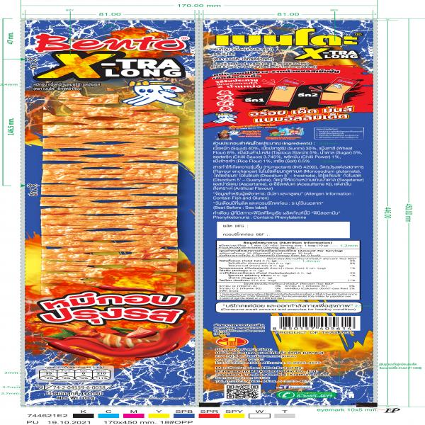 เส้นยาว เนื้อนุ่ม-เหนียว สีเหลืองอ่อนอมน้ำตาล กลิ่นรสชาติบาร์บีคิว มีรสชาติเผ็ด