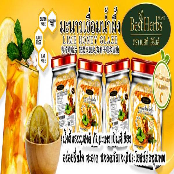 มะนาวแป้นเชื่อมน้ำผึ้ง แล้วนำมาอบแห้ง สามารถรับประทานได้ทั้งแผ่นมะนาว หรือทานชงเย็น หรือแบบชงร้อน