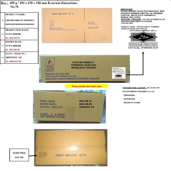 CHICKEN BREAST TRIMMING SKINLESS BONELESS FROZEN