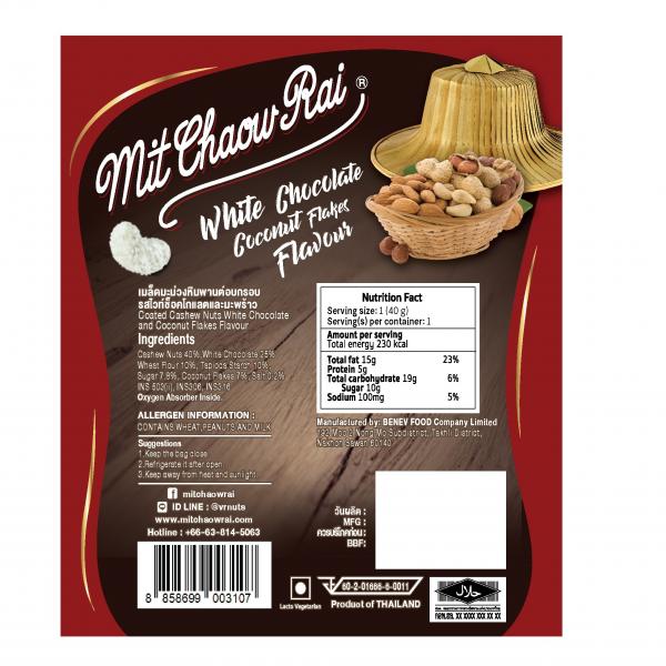 เมล็ดมะม่วงหิมพานต์อบกรอบ รสไวท์ช็อคโกแลตและมะพร้าว