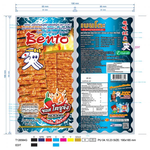 ซีฟู้ดสแน็ค (ซูริมิผสมเนื้อหมึก) รสซอสเผ็ดเกาหลี (ตรา เบนโตะ)