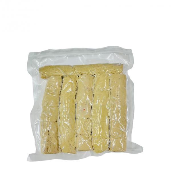เนื้อกุ้งและเนื้อไก่ผสมเครื่องปรุงรส ขึ้นรูปทรงกลมยาว