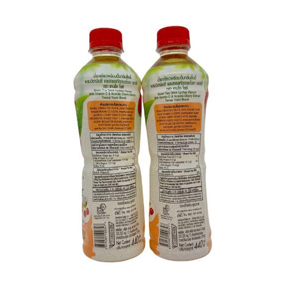 ประเภทเครื่องดื่มชนิด อาหารที่ปรับสภาพให้เป็นกรด ลักษณะเป็นน้ำสีเหลืองทอง กลิ่นหอมชาเขียวผสมลิ้นจี่ รสชาติหวานอมเปรี้ยว %brix 5.50-7.50 pH 3.0-4.0 บรรจุในขวด PET 440 ml. อายุการเก็บรักษา 2 ปี ที่อุณหภูมิห้อง