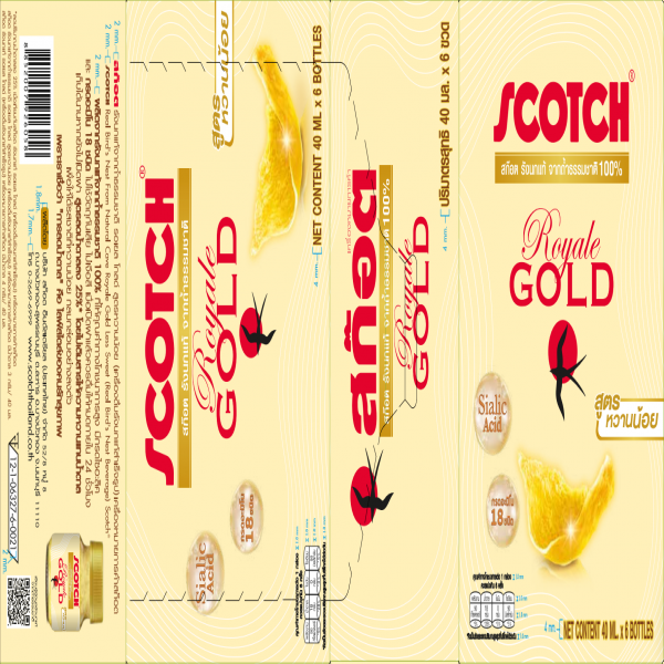 สก๊อต รังนกแท้จากถ้ำธรรมชาติ รอเยล โกลด์ สูตรหวานน้อย (เครื่องดื่มรังนกแท้สำเร็จรูป)